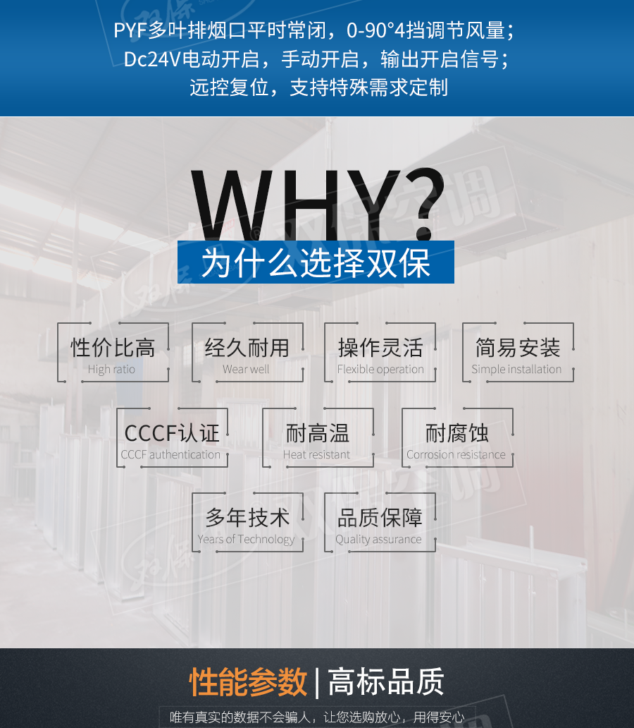 【閥門特點】CCCF認證,輕巧實用,安全可靠,壽命長久。一般安裝在防煙系統管道,平時常閉,電動或手動開啟。